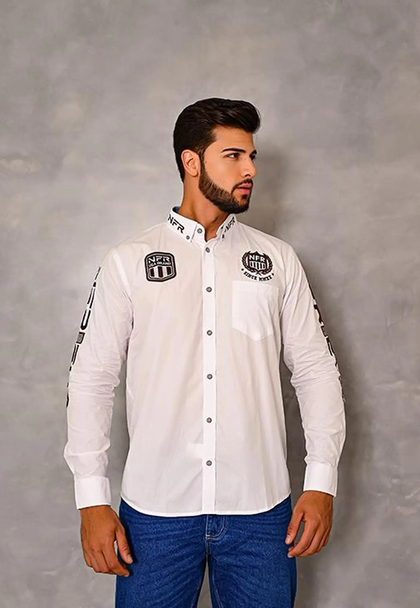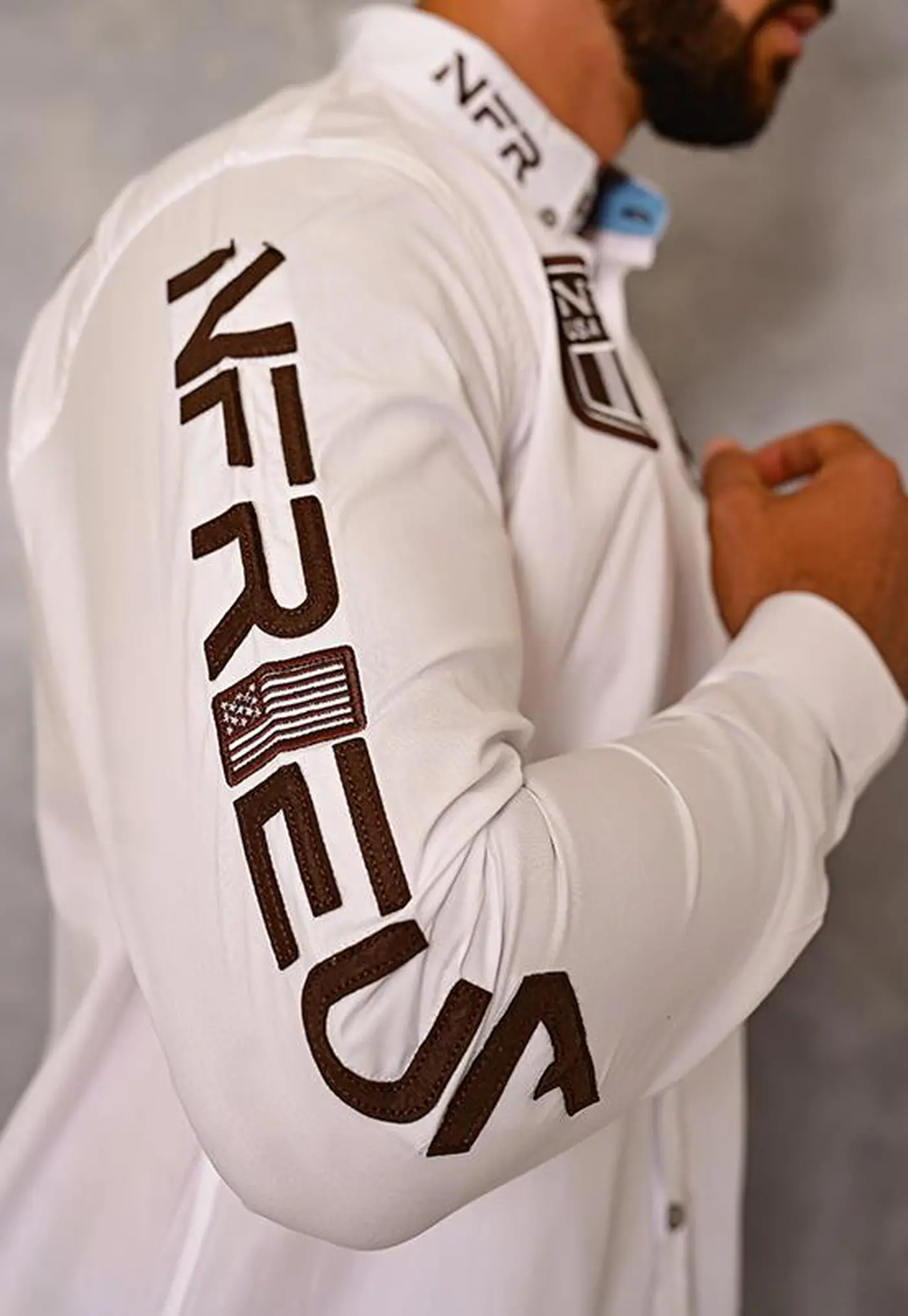 A camisa branca NFR Rodeo Classic foi feita pra quem busca presença, estilo e autenticidade no visual. Com um design marcante e bordados robustos em alto relevo, ela transmite força e identidade country de verdade.