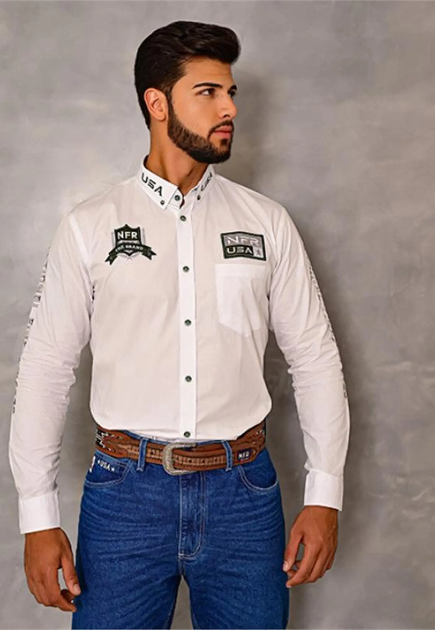 A camisa NFR USA branca traz um visual limpo, imponente e cheio de identidade. Desenvolvida para quem busca elegância com atitude, ela combina perfeitamente o clássico com o moderno, mantendo a raiz do lifestyle country.