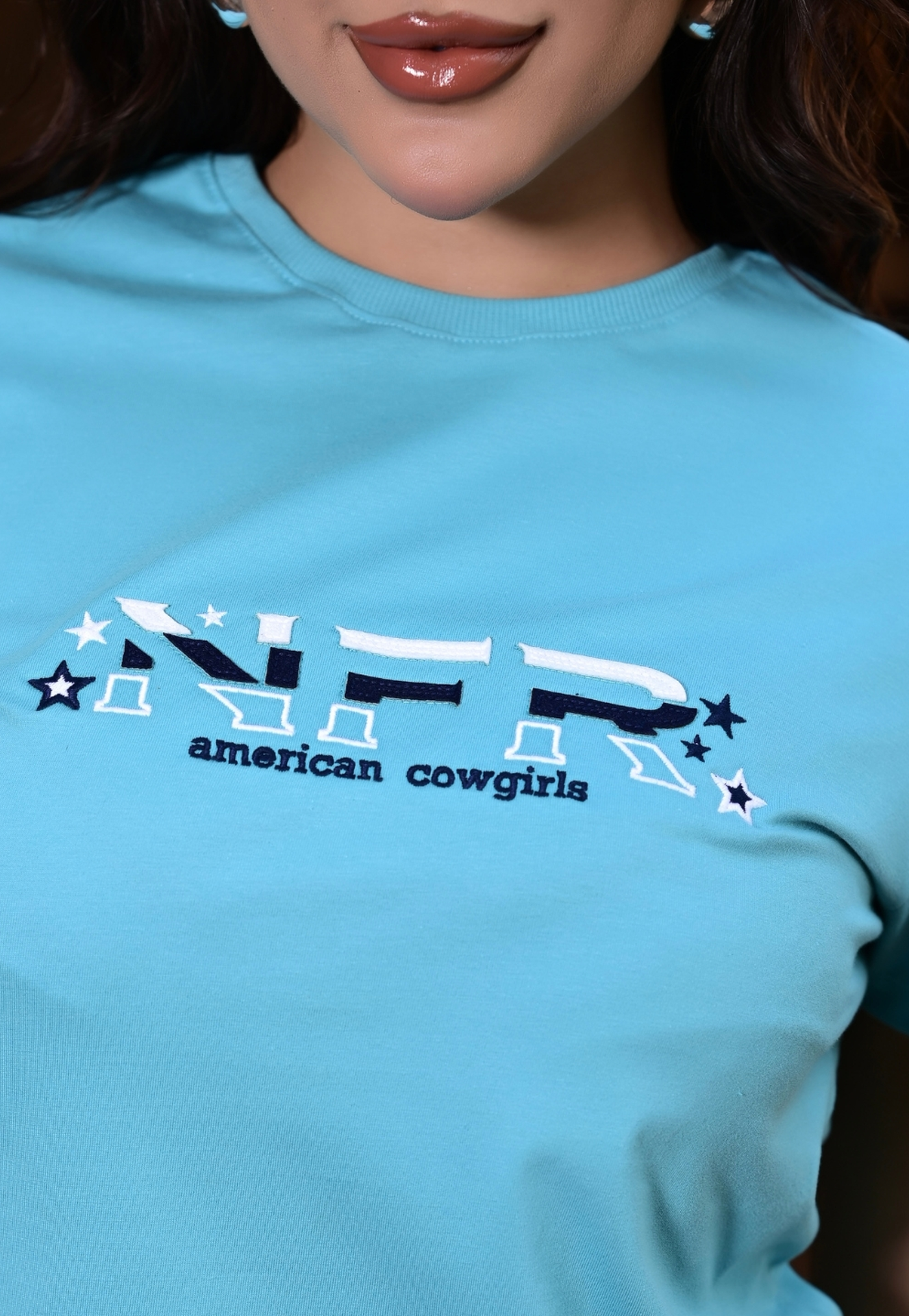 Camiseta Feminina Azul Claro Bordada NFR