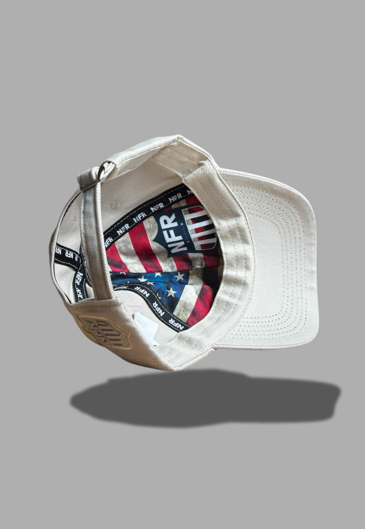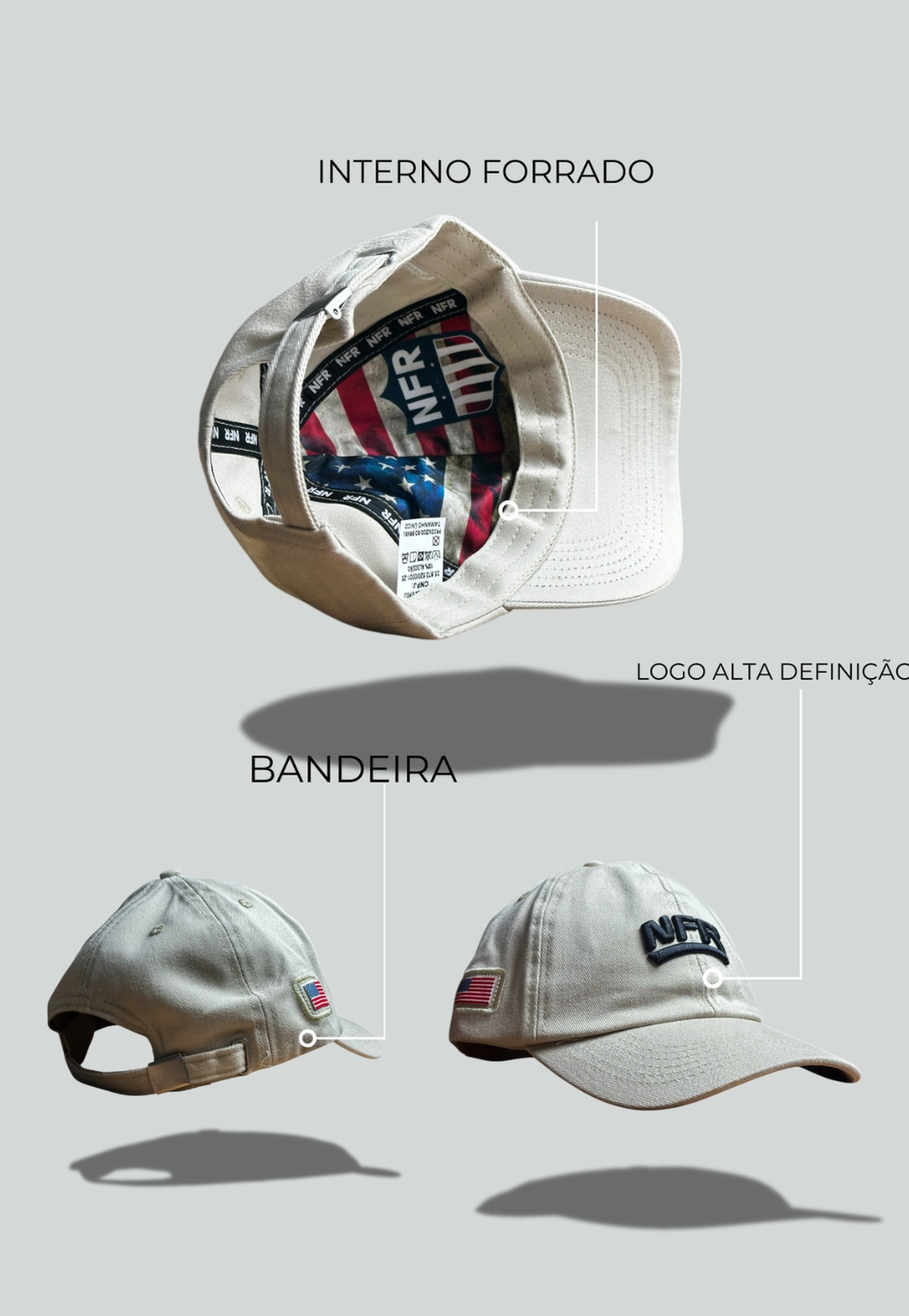 O grande destaque vai para a bandeira dos EUA aplicada com acabamento impecável e a logo NFR em alta definição, reforçando autenticidade e presença no visual.