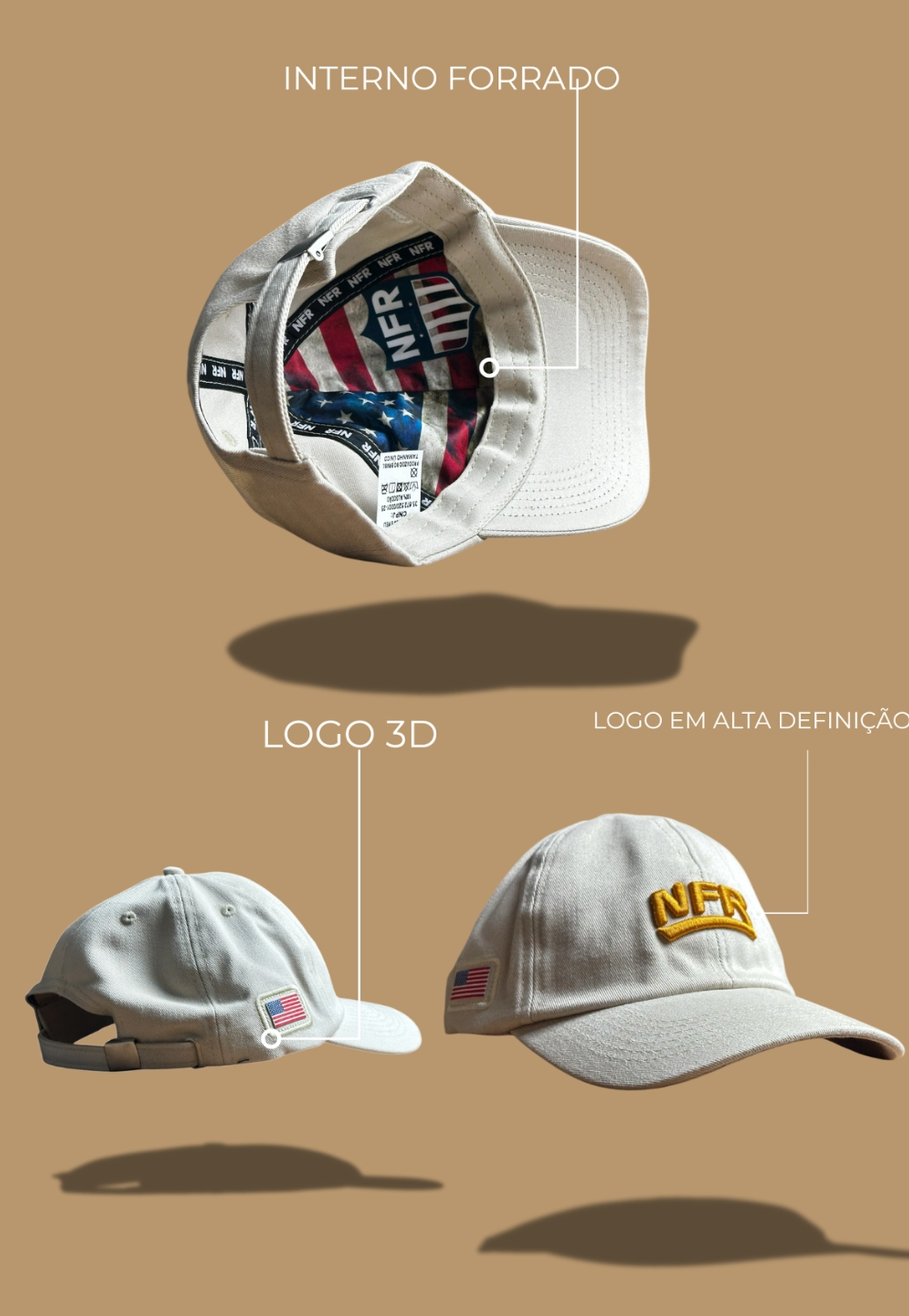 O destaque da peça é a Logo NFR dourada em alta definição, trazendo sofisticação, brilho discreto e personalidade ao visual — perfeita para quem busca estilo country premium.