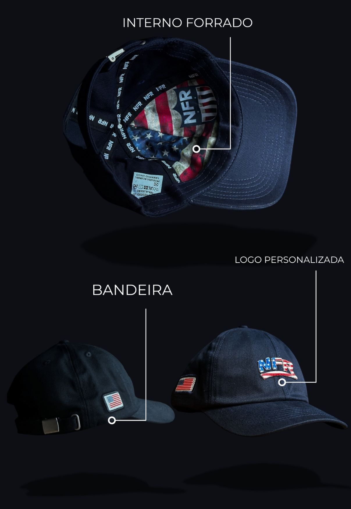 A peça traz a Logo NFR e a bandeira dos EUA em alta definição, aplicadas com acabamento impecável que garante brilho, destaque e identidade marcante ao visual.