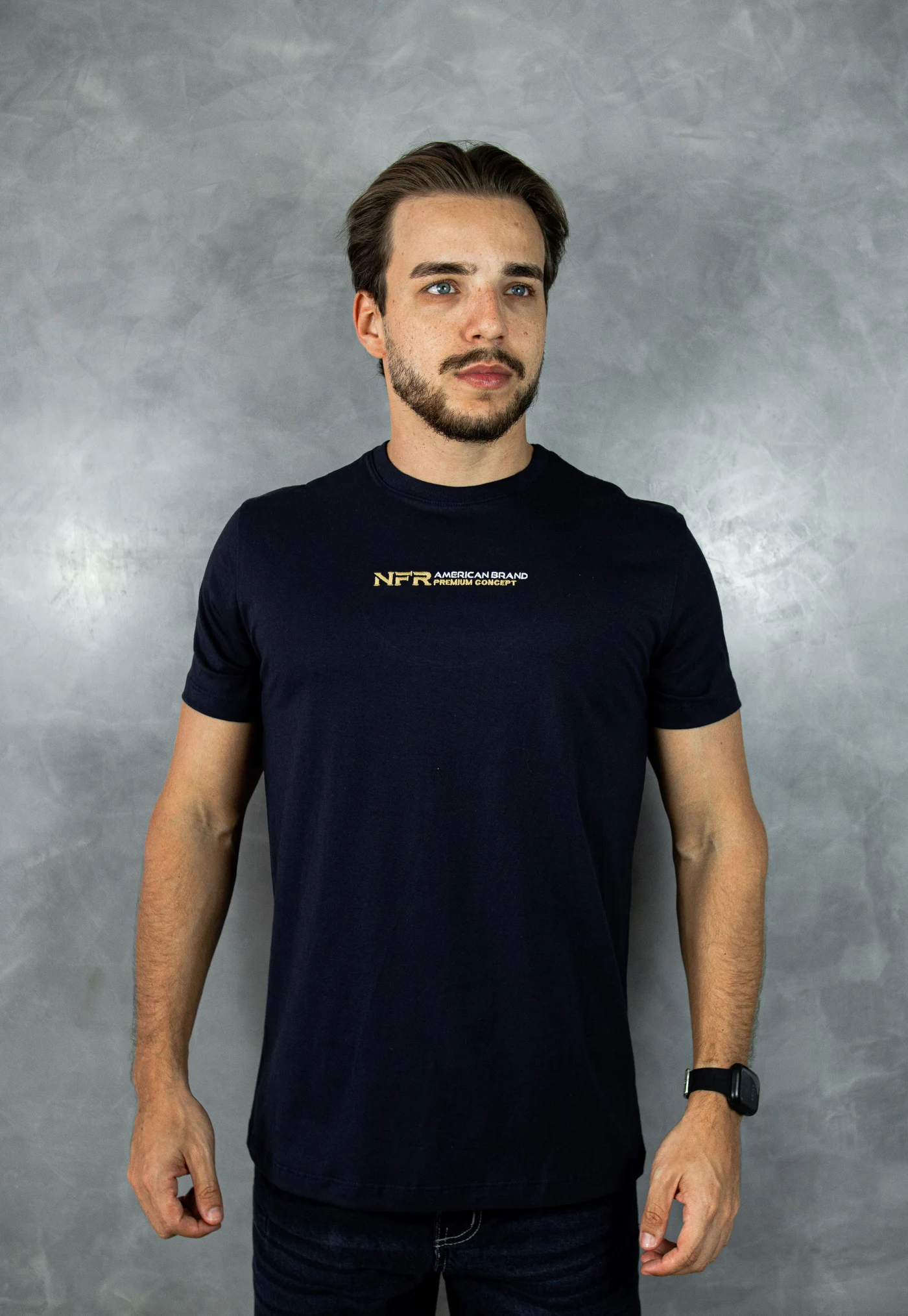 Camiseta Masculina NFR Azul Marinho Bordada – 100% Algodão