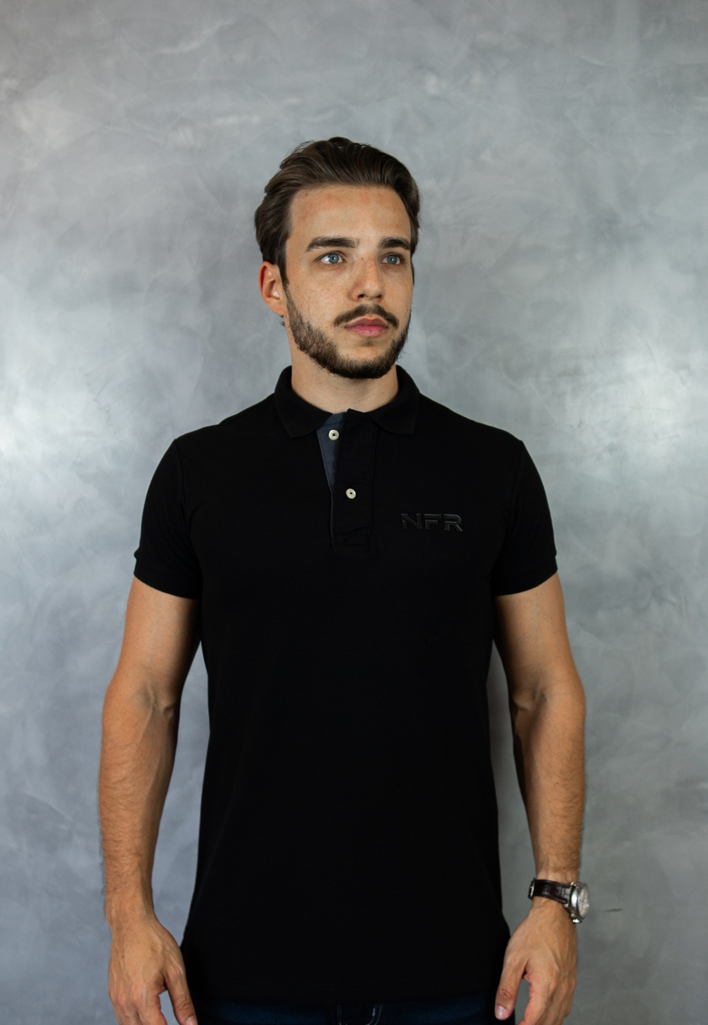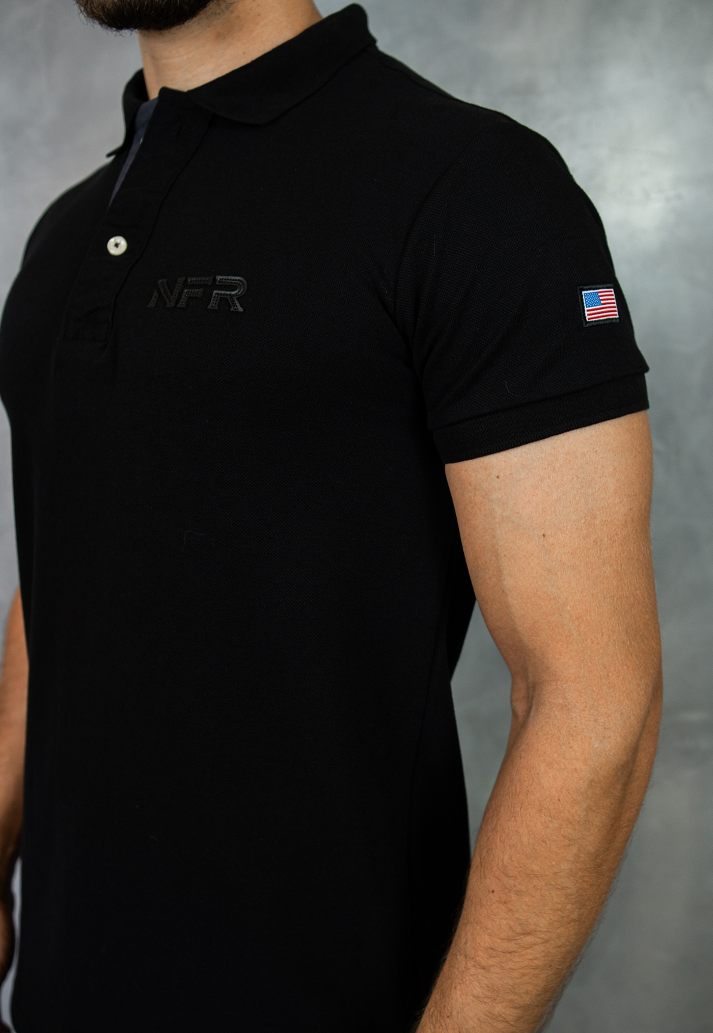 Camiseta Polo Masculina Preta Bordada – Linha Exclusiva NFR