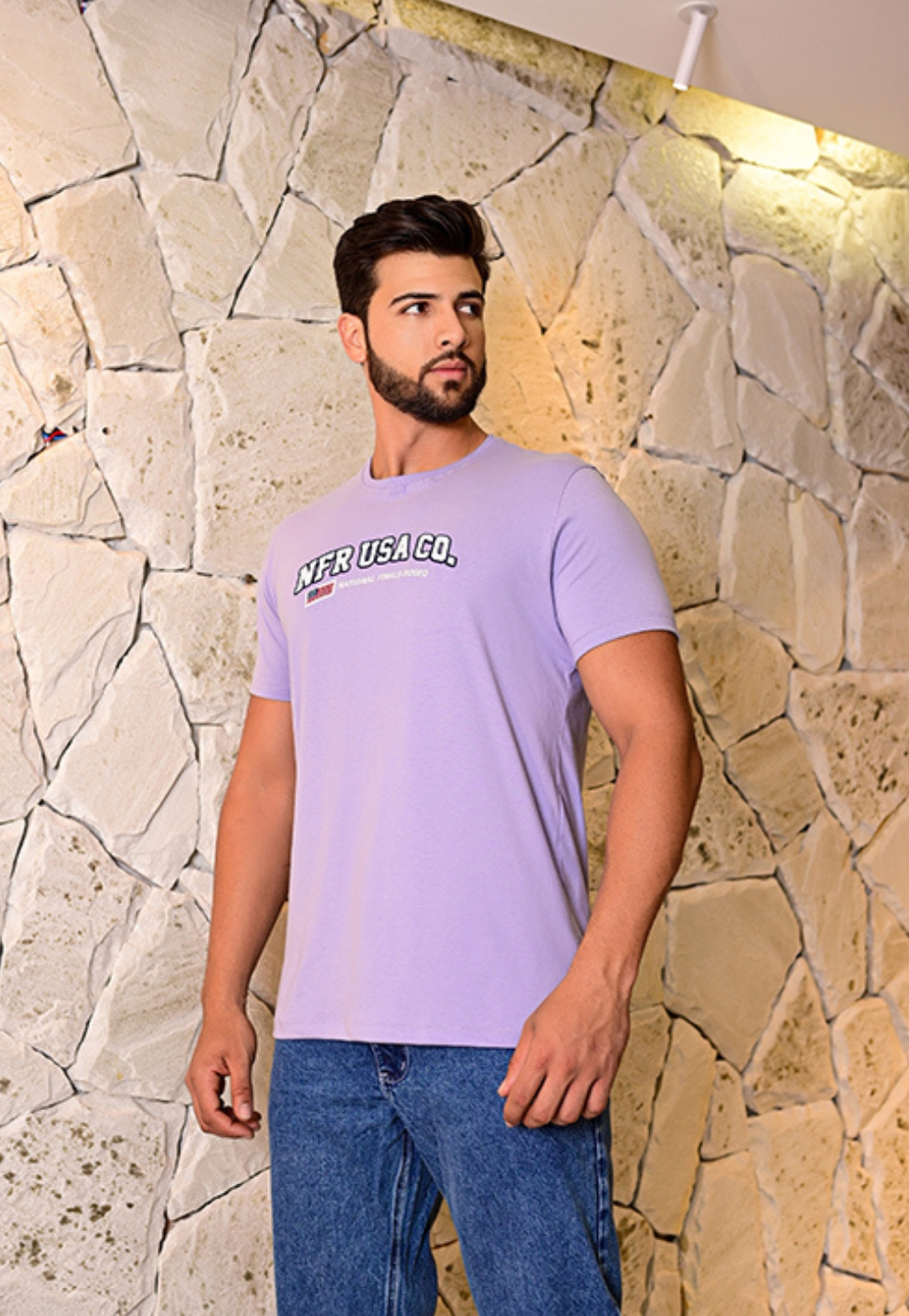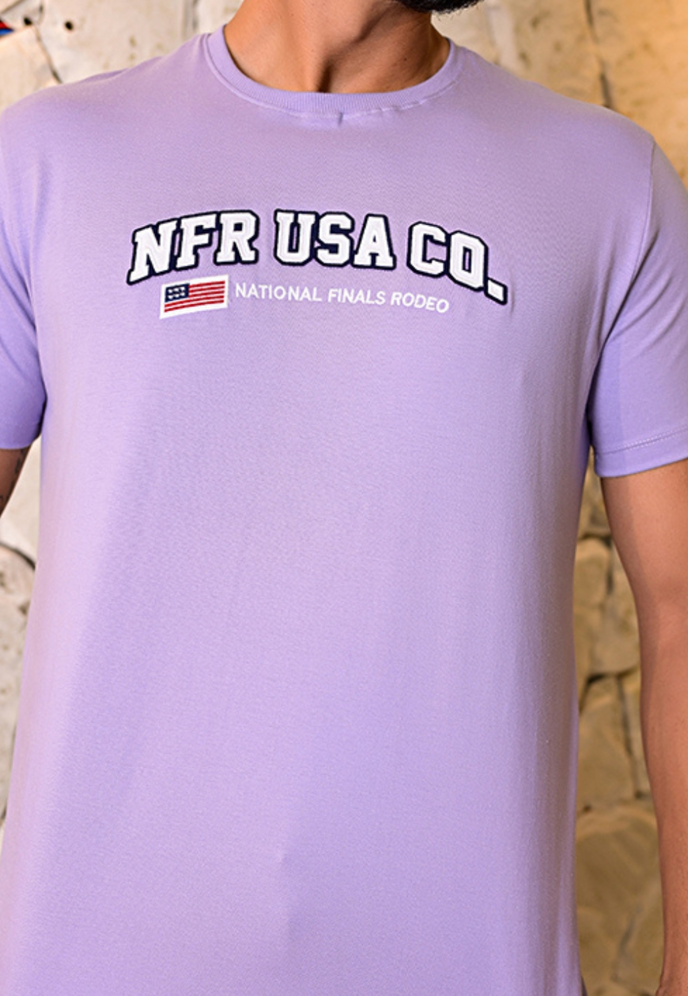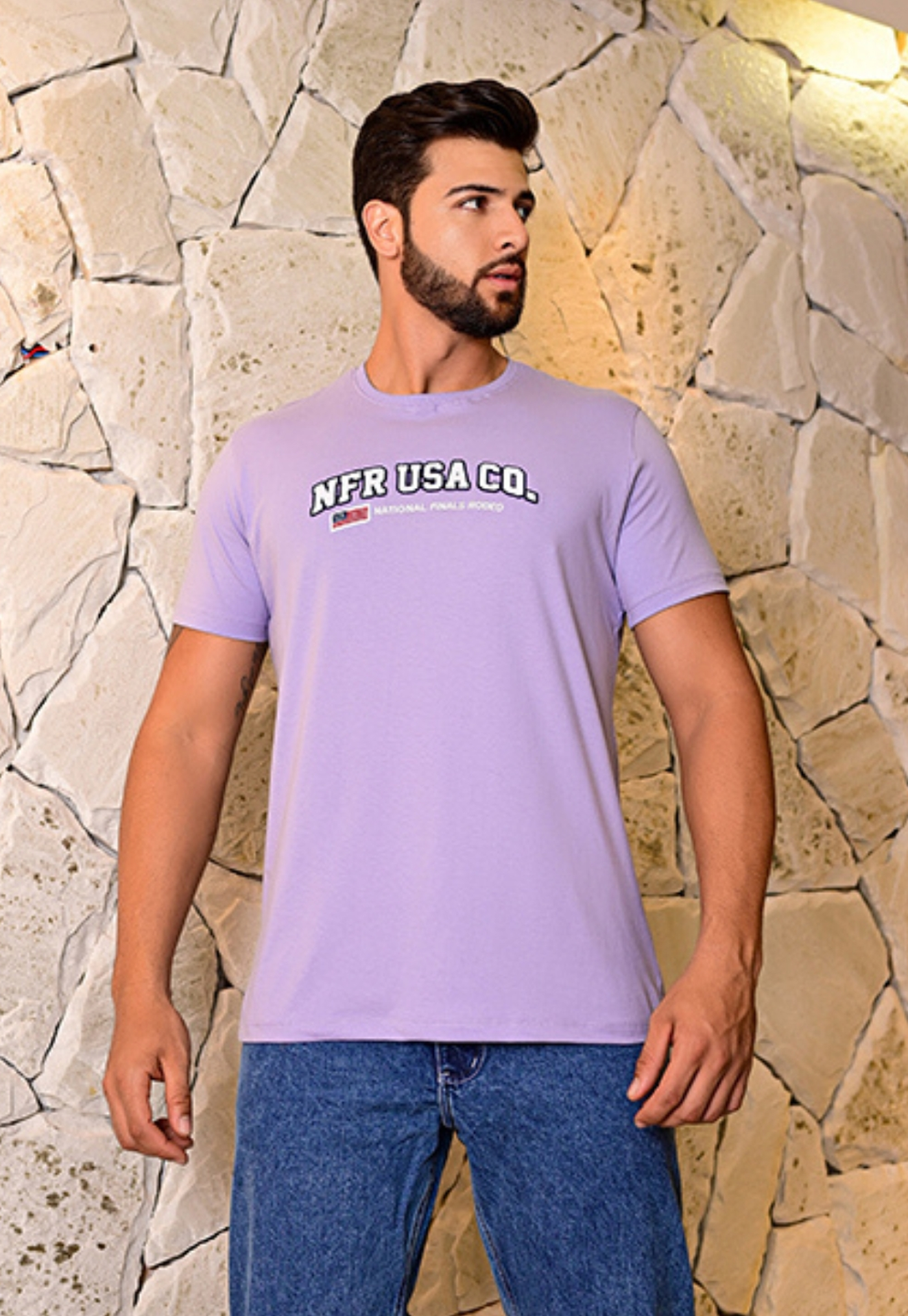 Elegância e autenticidade em um só estilo. A Camiseta Lilás Bordada NFR é feita em malha 100% algodão premium fio 30.1 penteada, oferecendo toque macio, caimento perfeito e durabilidade superior.