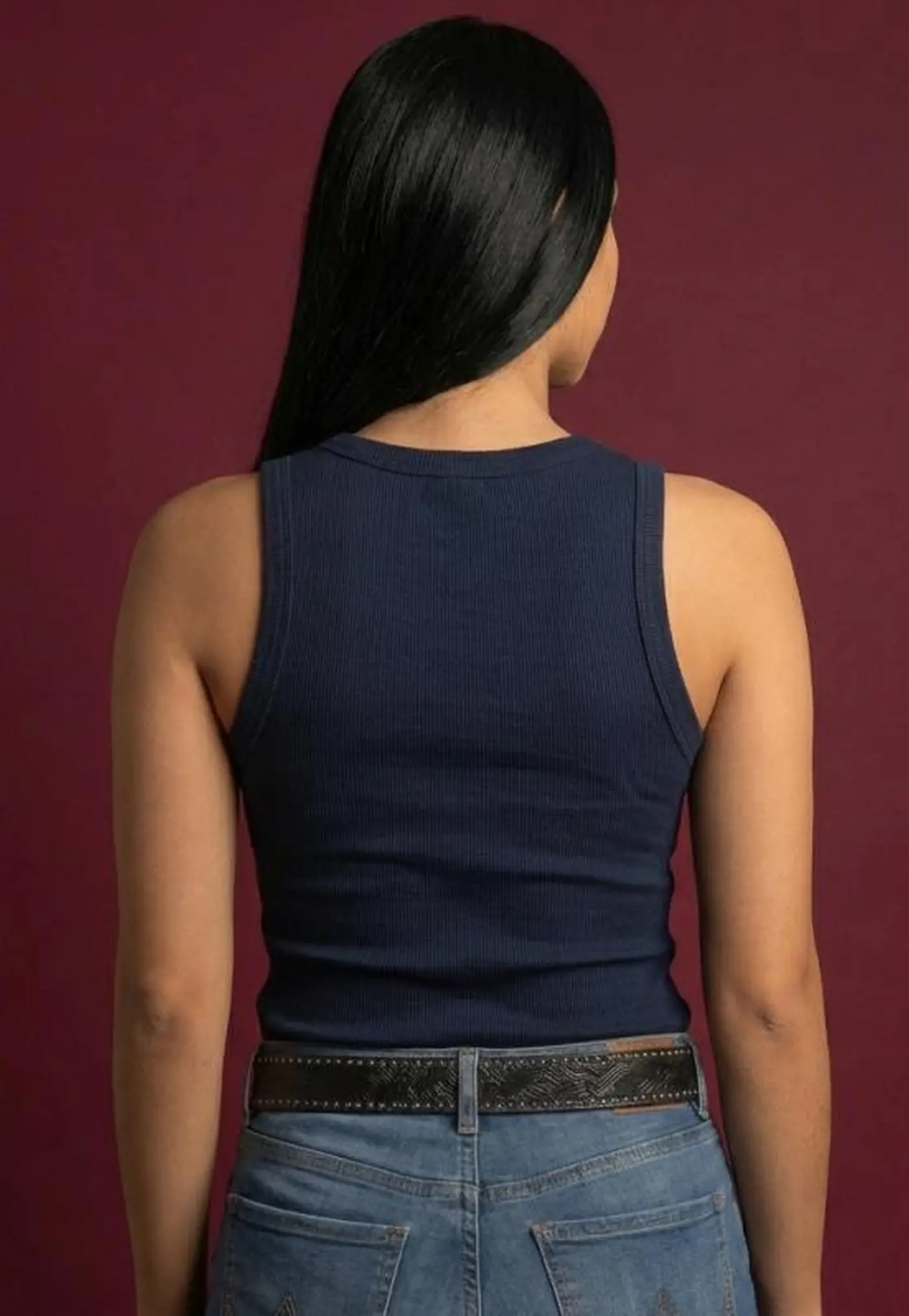 A regata feminina NFR na cor azul marinho une elegância e atitude em uma peça versátil e atemporal. O tom profundo traz sofisticação ao visual, enquanto o bordado frontal com a identidade NFR em destaque adiciona um toque moderno e marcante.