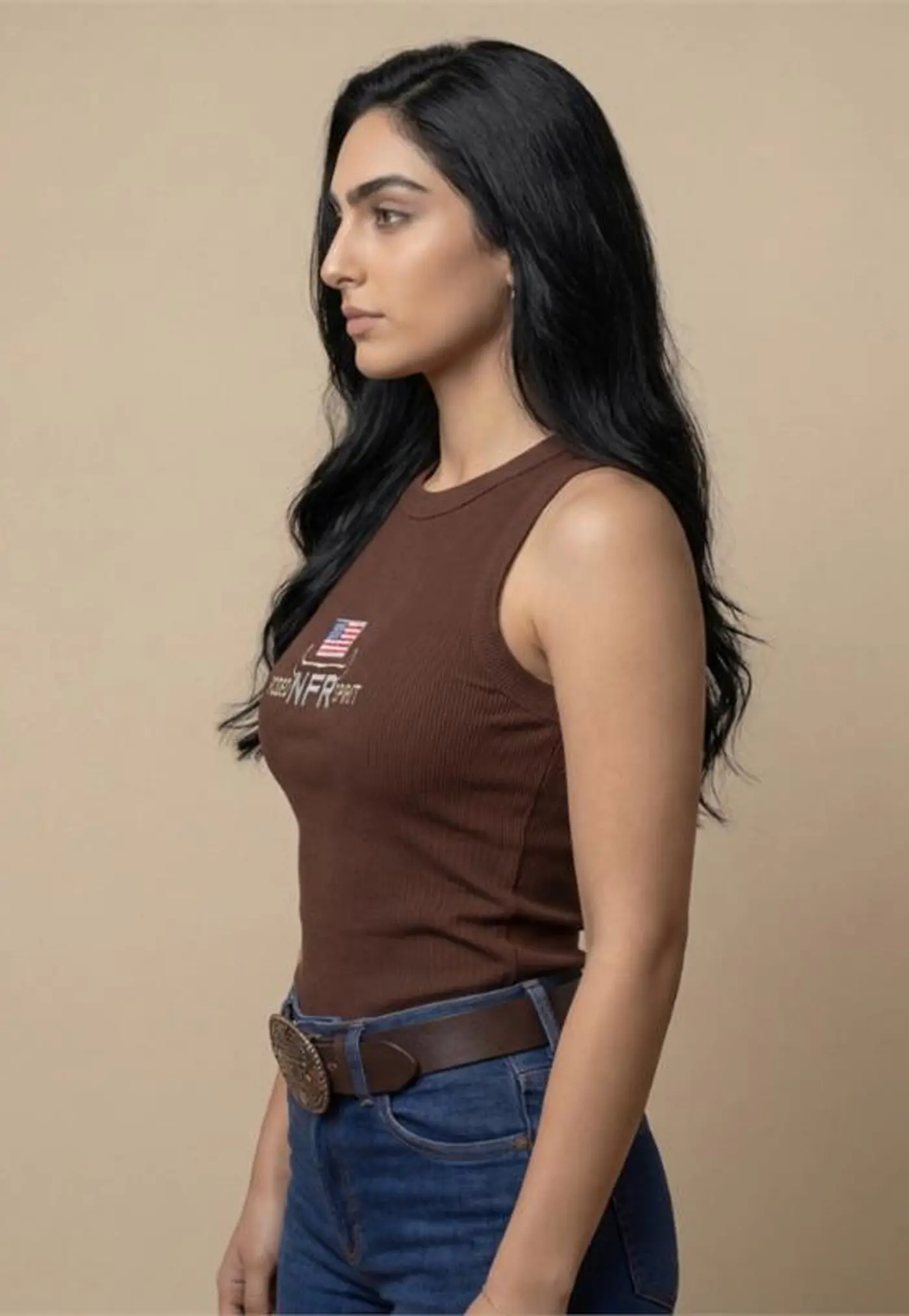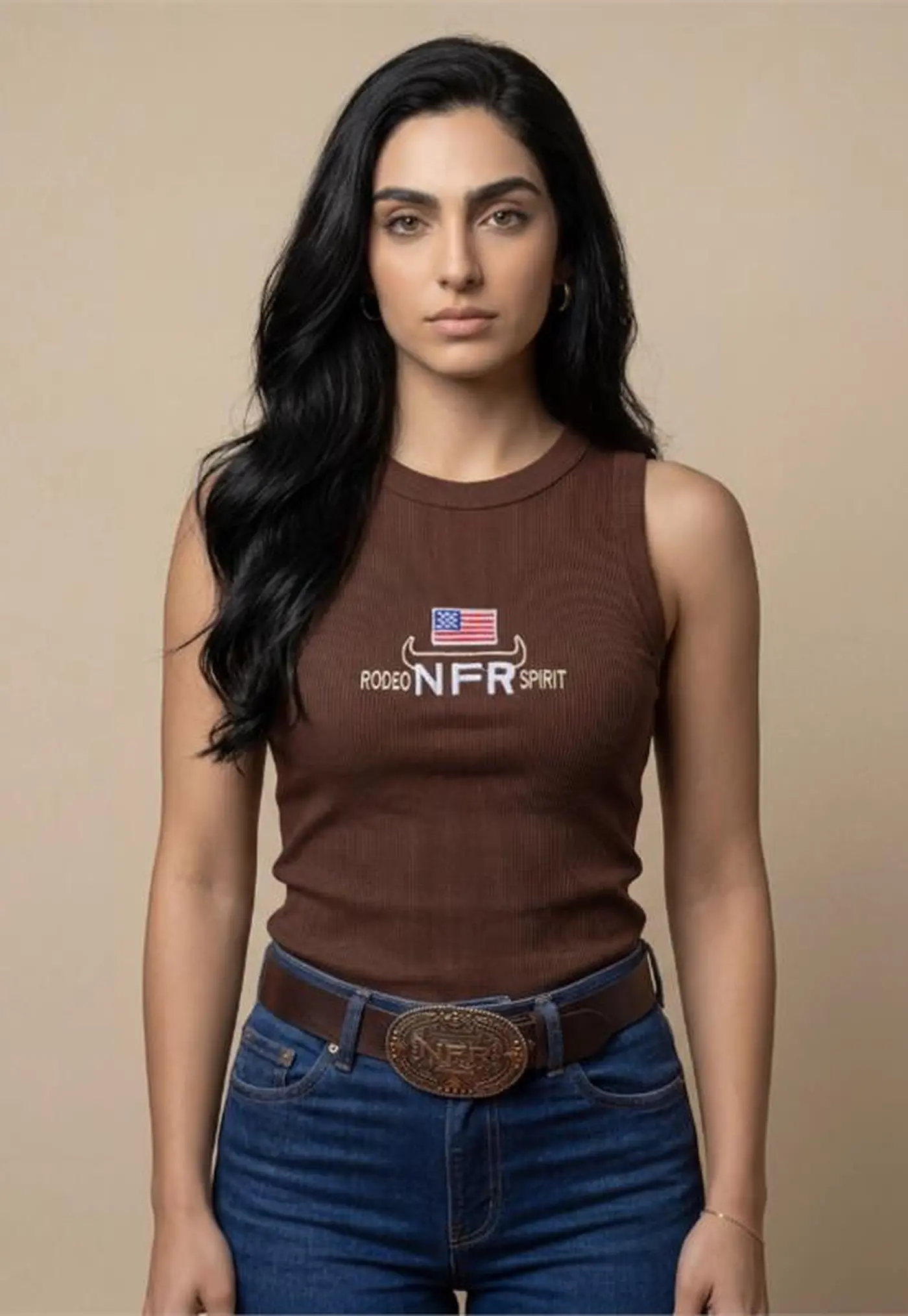 Regata Feminina NFR Canelada – Marrom “Rodeo NFR Spirit”