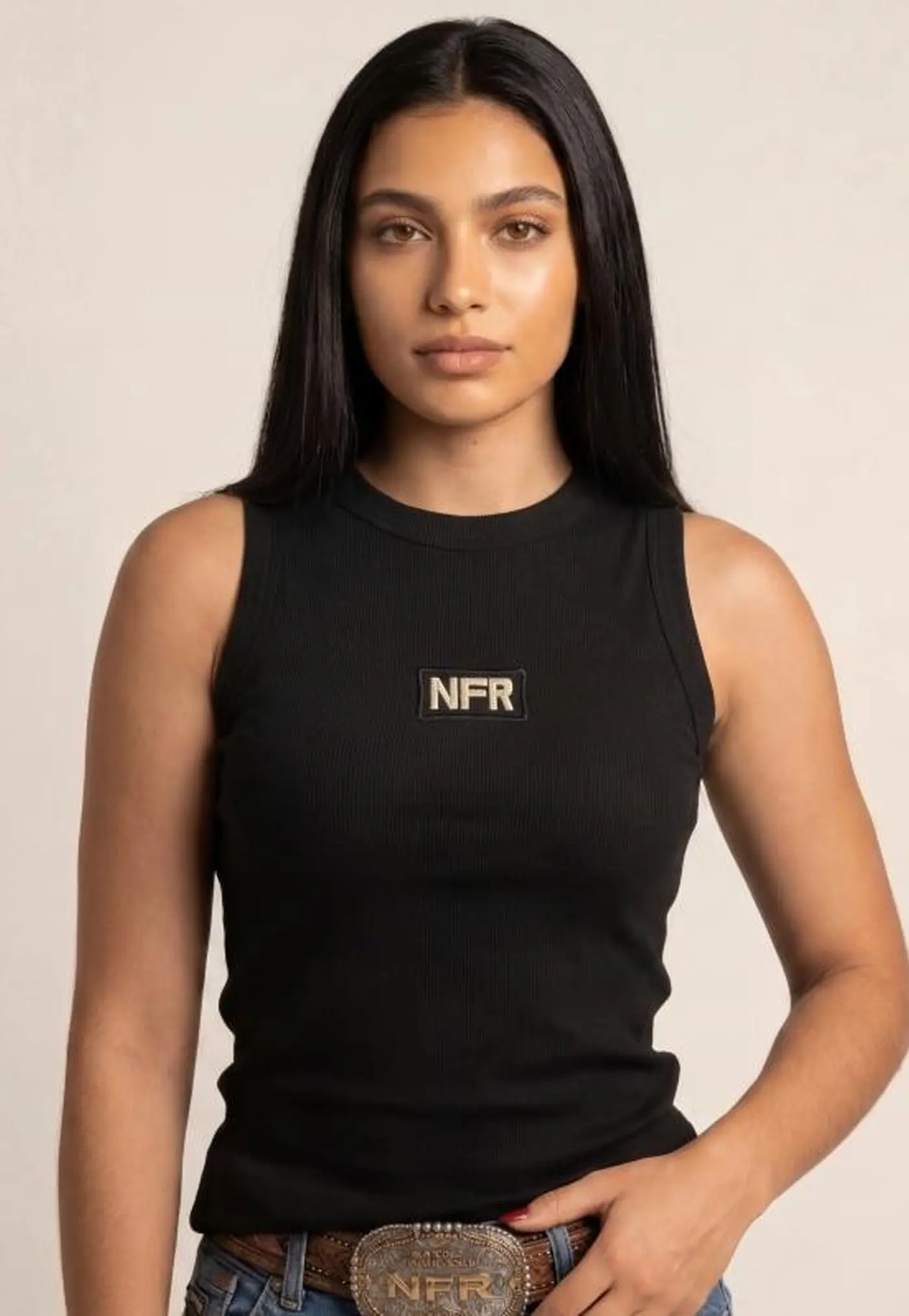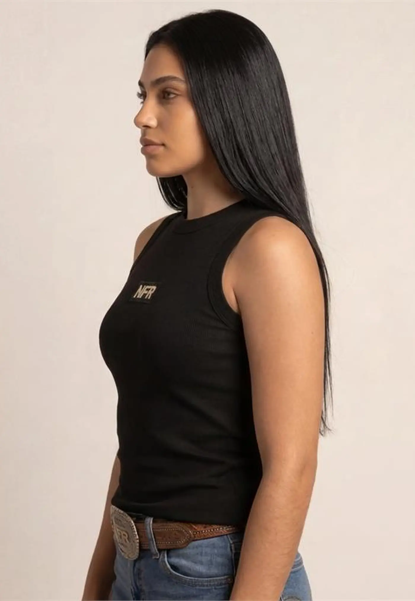 A regata feminina NFR na cor preta é aquela peça curinga que não pode faltar no guarda-roupa. Com um visual moderno e minimalista, ela entrega estilo com facilidade, combinando com qualquer proposta — do casual ao mais alinhado no estilo country.