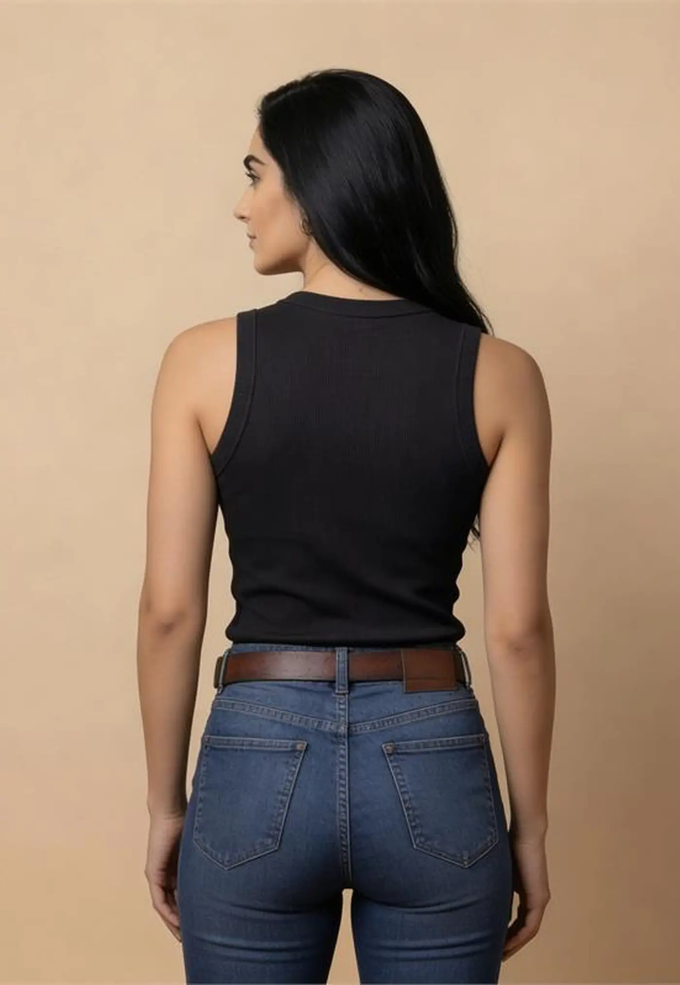 Confeccionada em tecido canelado, oferece ajuste perfeito ao corpo, conforto e liberdade de movimento. A modelagem valoriza a silhueta feminina, enquanto o bordado frontal com a identidade NFR em acabamento premium eleva o nível da peça.