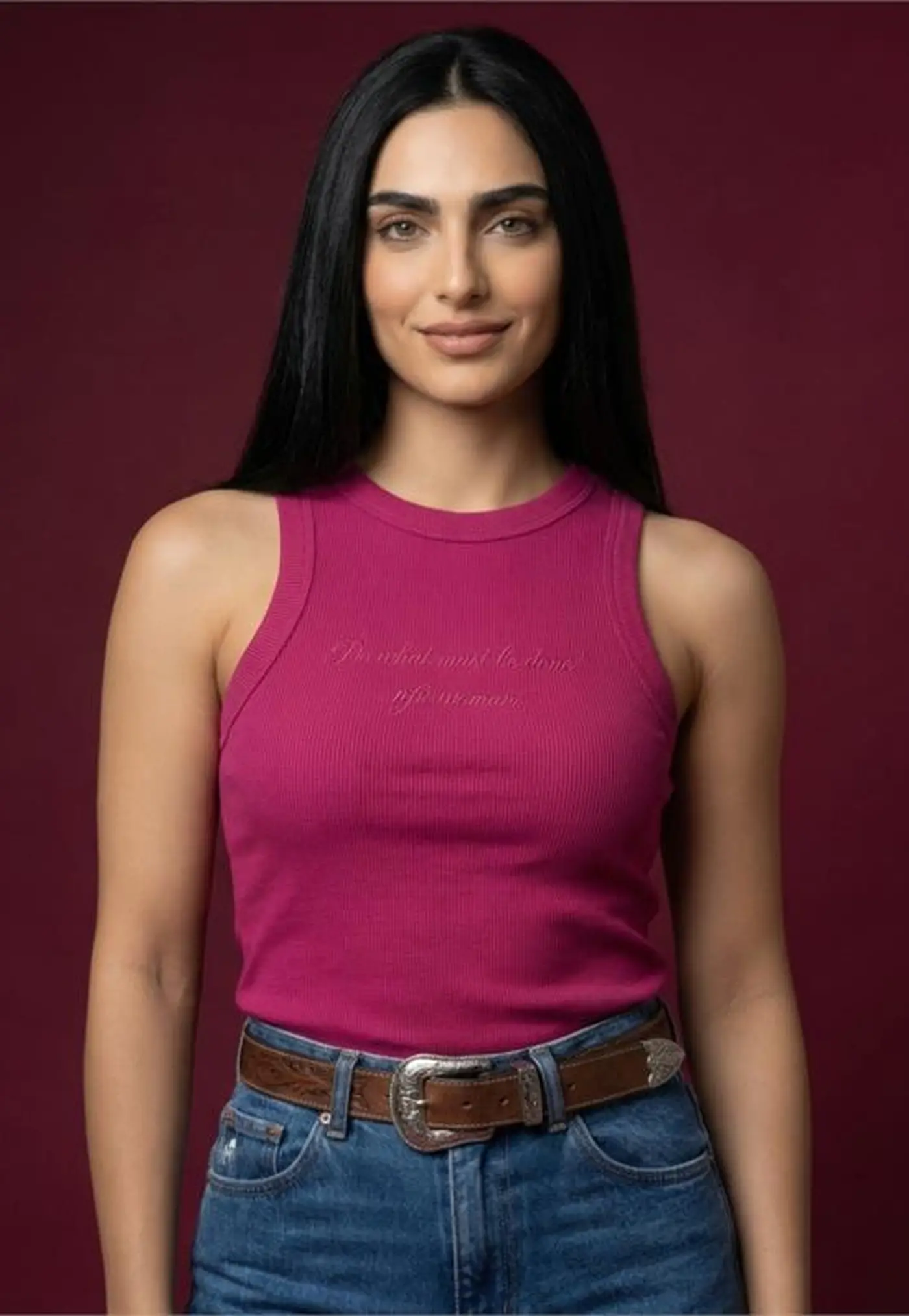 Confeccionada em tecido canelado, oferece ajuste ao corpo, conforto e liberdade de movimento. A modelagem valoriza a silhueta, tornando essa regata ideal tanto para produções mais casuais quanto para composições mais marcantes.