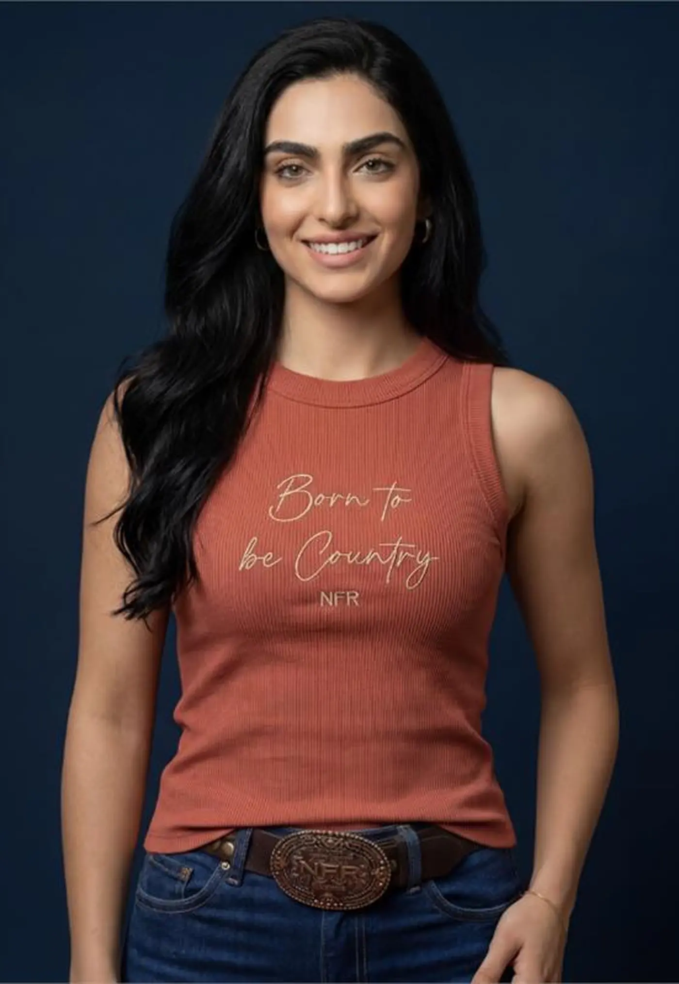 A regata feminina NFR na cor terracota traz a essência do estilo country em cada detalhe. Com a frase exclusiva “Born to be Country” bordada na parte frontal, a peça carrega atitude, identidade e conexão com quem vive esse estilo de verdade.